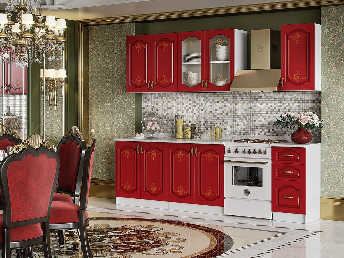 • Классическая кухня «Версаль» очарует вас своим исполнением и красивой цветовой гаммой. Ненавязчивый, нежный рисунок на фасаде идеально гармонирует со стилем и дизайном кухни. С таким кухонным гарнитуром не стыдно принять гостей и приятно провести время в семейном кругу или с друзьями.